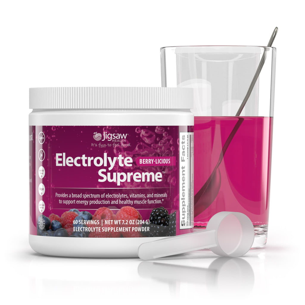 Jigsaw Electrolyte Supreme™ contains a broad spectrum of electrolytes, minerals and vitamins in each serving. Replenish and rehydrate your body by adding one scoop of Jigsaw Electrolyte Supreme™ to your water for a refreshing and nourishing energy-boosting beverage.